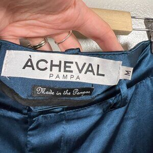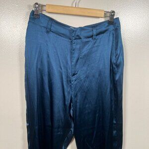 Acheval Pampa Silk Trouser Pants Size Medium Blue High Rise Cropped Work Minimal
