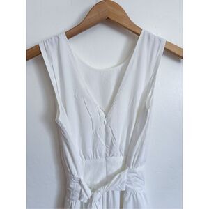 Details: sleeveless, zips in back, ties in back at waist, small side slits at bottom, double lined