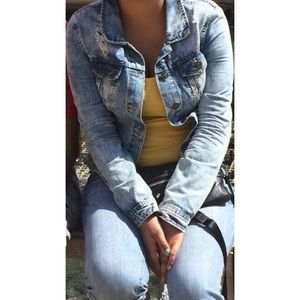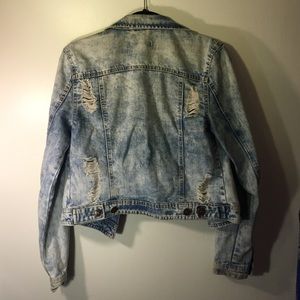 Acid wash, multiple (bought with) rips front & back, fits like small/medium