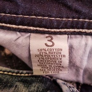 These shorts are adorable! Featuring lightly distressed, acid washed, deep blue denim and a flirty lace trim hem. Only worn twice. Pair with a cute tank and sandals for a summer day or a relaxed, chunky-knit sweater for cool nights around a fire pit. Material has a little bit of stretch to it for extra comfort. Button/zip closure. 2" inseam (including lace trim).