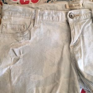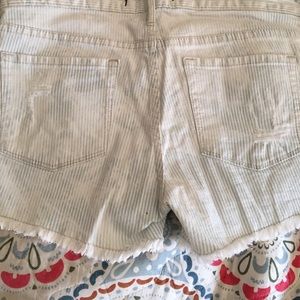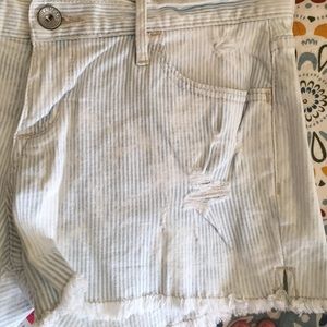 White and baby blue striped acid wash shorts with ripped design as well as slight fringe design on the bottom. In perfect condition only worn 2x! Originally from Pacsun