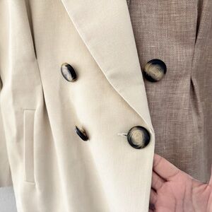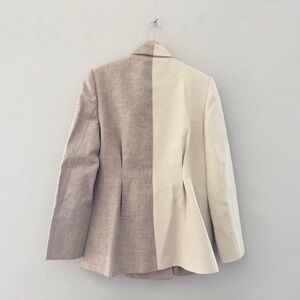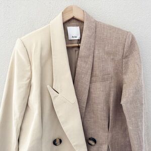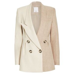 Acler Belvue Linen Blazer Jacket Double Breasted Two Tone Color Block Tan 8 NWOT