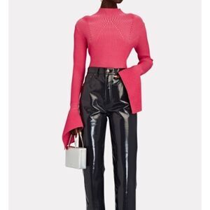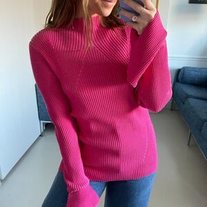 Acler Long Sleeve High Neck Ribbed Knit Flare Sleeve Sweater Pink 8