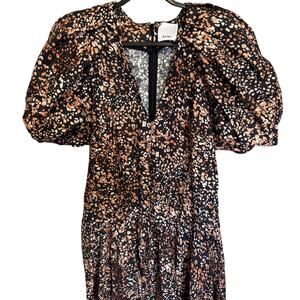 Acler NWOT Warner Belted Dress Puff Sleeves Linen A Line Maxi Black Brown Size 6