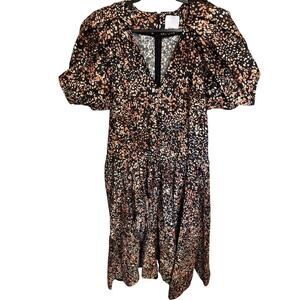 Acler NWOT Warner Belted Dress Puff Sleeves Linen A Line Maxi Black Brown Size 6
