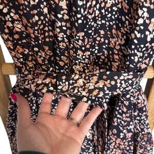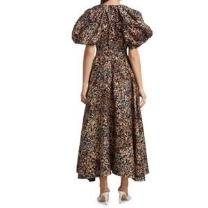 Acler NWOT Warner Belted Dress Puff Sleeves Linen A Line Maxi Black Brown Size 6