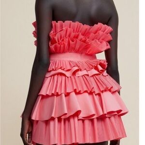 Acler Pink Pleated Ruffle Strapless Mini Dress NWT