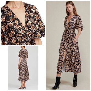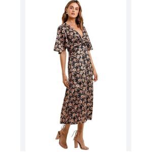 Acler Tippet Floral Flutter Sleeve Midi Dress Size 2