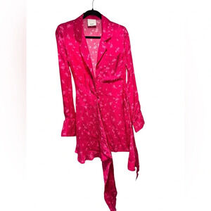 Tags: fuchsia, acler dress, mini dress, satin dress, floral jacquard mini shirt dress, long sleeve, NWT, new, AU6, AU 6, pink