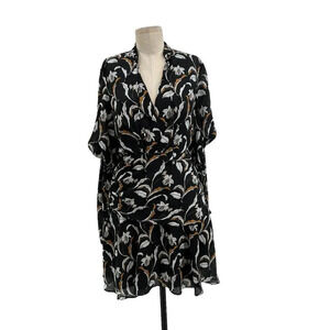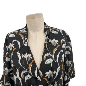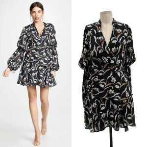 Acler Zammit Mini Dress Long Sleeve Floral Printed Draped Navy Blue Size US 6