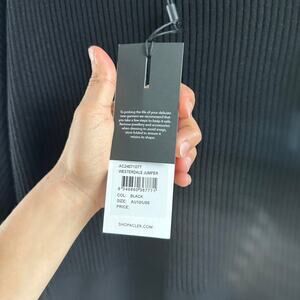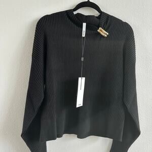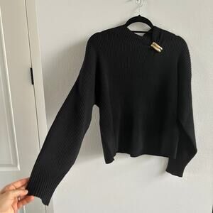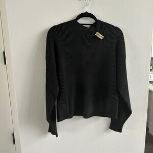 features a knitted construction, ribbed knit, and gold-tone hardware. It also features gathered detailing, an asymmetric neck, long sleeves, drop shoulder, ribbed cuffs and hem, and a straight hem.