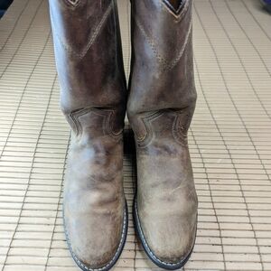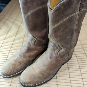 Acme Boots women's size 6.5B raw tan leather Western Cowgirl Roper boots.