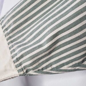 Key features: sage green and beige stripes, long sleeve, button mandarin collar, embroidered Taz and She-Devil