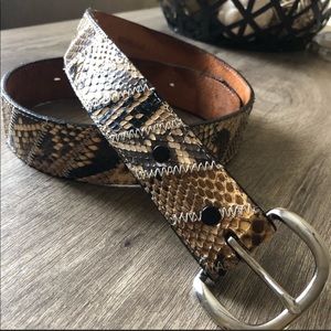 Acme Genuine Python Patchwork Belt in EUC. Silver buckle 36” long, 1.5” wide.