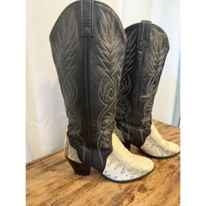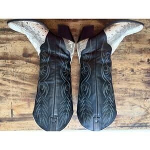 Acme Womens Western Leather Snake Skin Cowgirl Cowboy Boots 0735 9.5 M Black