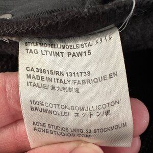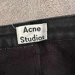 Acne Studio Black Fleece Lined High Rise Straight Crop Jeans Women's 27 4**
