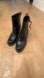 Back leather, exterior side zip with silver hardware, platform, block heal approximately 3”.