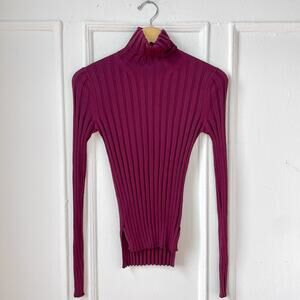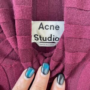 Acne Studio S Rib Knit TurtleNeck Sweater Long Sleeve Burgundy Merino Wool blend