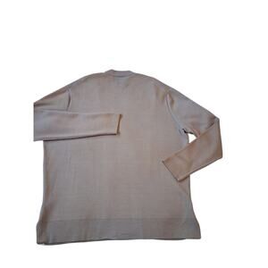 Please see photos. Sweater has no tags and has a couple of stains and discoloration from trying to remove spots..? I think.. Spots are not Bad and not that Noticeable. photos are of the Actual Sweater.