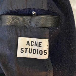 100% Wool And Calfskin Leather Bomber Jacket Size 52. US Medium Great Size For Wearing a Sweater Under. Navy & Black