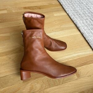 Acne Studios Bertine Brown Boots Square Toe Ankle Women's 38 7.5 8