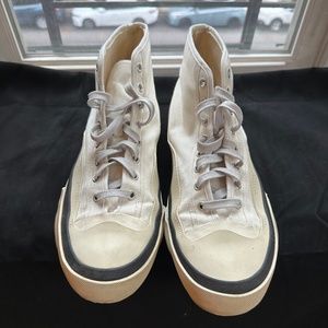 Acne Studios Blå Konst white/white high top lace-up sneakers featuring chunky vulcanized soles.