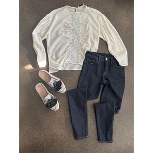 Approx measurements Waist 22" Inseam 28.5" Rise 9.75" leg opening 10.25"