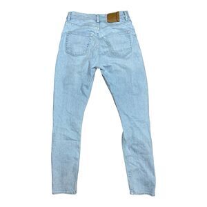 The Acne Studios Bla Konst Floragatan 13 Stockholm Denim Women's Jeans in size 26/28 are a stylish and high-quality pair of skinny jeans designed for women. The light fabric wash and blue color give them a trendy and versatile look, perfect for everyday wear. Featuring a zip closure and subtle logo accents, these jeans from Acne Studios offer both fashion and functionality for the modern woman. Made in Stockholm, these jeans combine comfort with a sleek silhouette for a chic appearance.