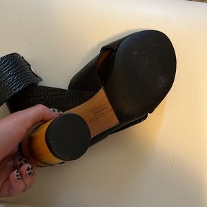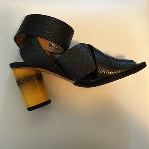Gently used and gorgeous! Perfect with a dress or skirt or even casual with jeans! Leather, bamboo like detail on heel. Made in Italy