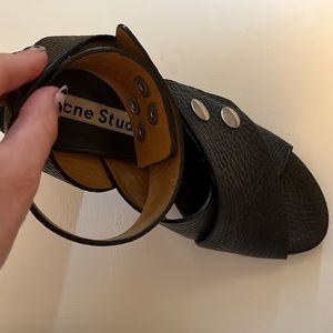 Acne Studios Black Leather Slingback Sandal With Bamboo Heel Size 37