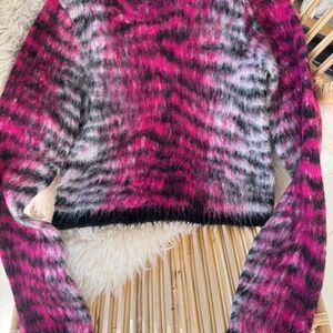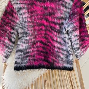 Acne Studios Brushed Pink-Multi Zebra Print Sweater (Fuchsia)