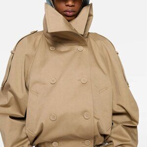 Stockholm-based Acne Studios has a firmly established cult following thanks to its Scandinavian-cool aesthetic. This trench-style jacket is crafted from cotton twill and features an elongated neckline and pleated finishes at the bottom hem.