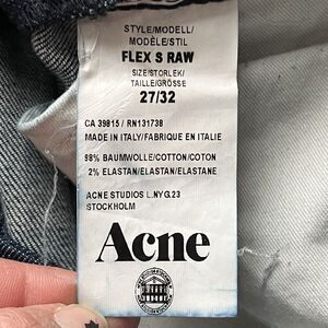 Acne Studios Flex S Raw Denim Slim Fit Mid Rise Jeans Size W27 / L32 Dark Indigo