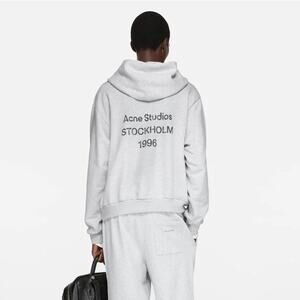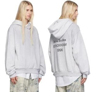 Acne Studios | Franziska Hoodie Pale Grey Melange Logo Distressed Sweatshirt S
