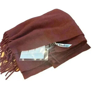 Acne Studios Fringe Wool Scarf Dark Rust Melange Oversized 100% Wool
