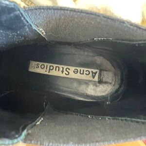 Acne Studios details like metal toe, ACNE STUDIOS embossed on back and all leather upper, inner and sole.