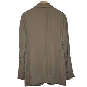 Richly textured wool-forward dry crepe is tailored into a fitted blazer in an elongated single-button silhouette with button-and-loop cuffs. Front button closure. Notched lapels. Chest welt pocket; front flap pockets. Lined.