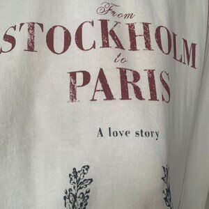T-shirt crafted from cotton jersey with a natural vintage appearance. Features a mesh long sleeve underlayer with lace detailing. Adorned with seasonal artwork on front. Complete with distressed neckline, cuffs, and hem. Cut for a relaxed fit and below hip-length silhouette.