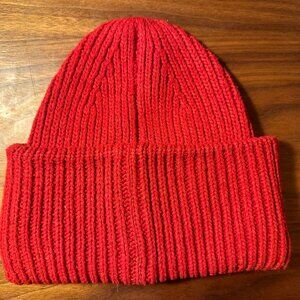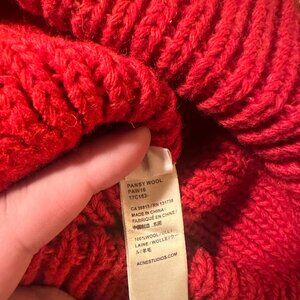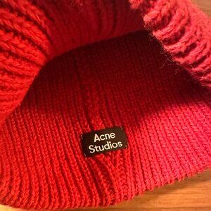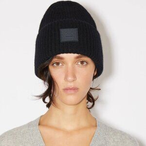 Acne Studios Knit beanie features a large embroidered face logo patch and ribbed detailing, crafted from chunky wool.