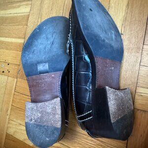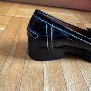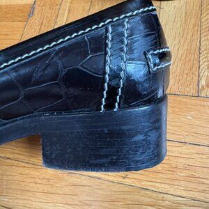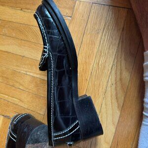 Acne Studios Leather Croc Embossed White Stitched Loafers (size 38)