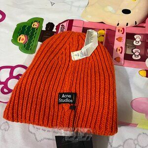 Acne Studios Orange Smiley Face Knit Beanie