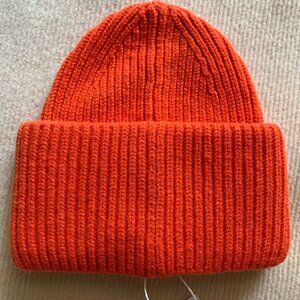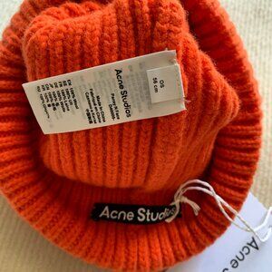 Acne Studios Orange Wool Ribbed Beanie Hat