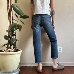 Nice pair of preloved Acne Studios jeans in a mid rise, ankle cut and straight slim leg. Vintage style wash, zip fly, 5 pocket construction and 2% stretch for comfort. In great preloved condition with no damage to speak of. Marked size 25, but waist measures 26.