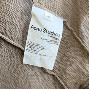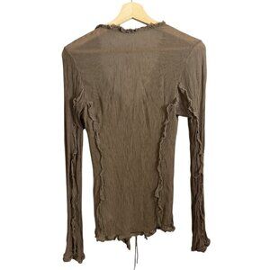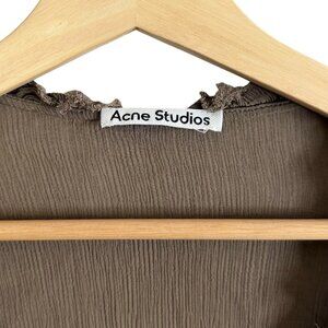 Acne Studios Sheer Ruffle Tie Front Blouse Taupe Mud Green XS Fairy Whimsygoth