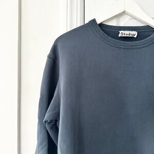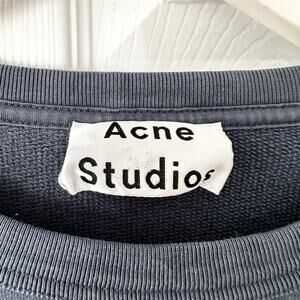 Size medium from Acne Studios. Slate grey blue crewneck sweatshirt with brand hit on bottom waist. Preowned in good condition with no stains or tears.