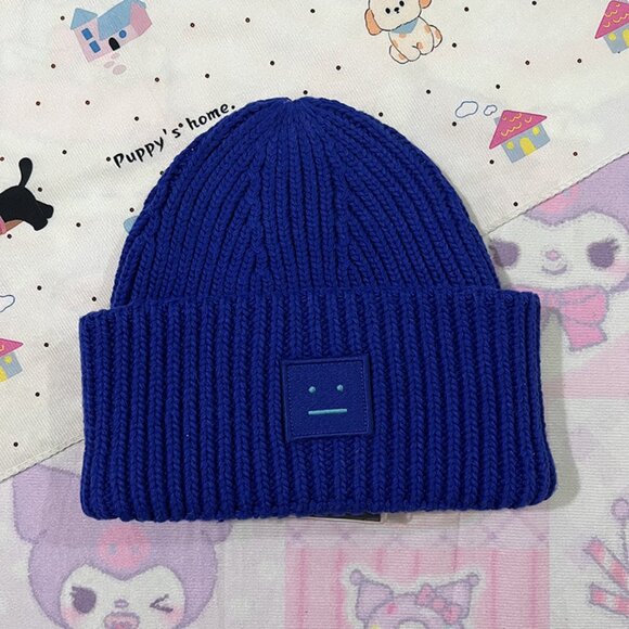 Acne Studios Square Face Knitted Beanie Hat Blue