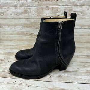 Acne The Pistol Black Leather Side Zip Ankle Booties Women's EU Size 40