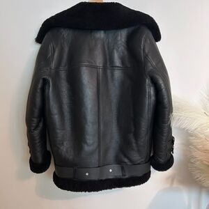 Details: Acne Studios' 'Velocite' jacket is so chic and cozy - it's easy to see why Kendall Jenner, Hailey Baldwin and Alexa Chung are fans. It's cut from black shearling for a loose fit and has buckled leather straps along the hem and cuffs so you can adjust the shape. Keep your phone and cardholder safe and secure in the zipped pockets. Intended for a loose fit. Fits true to size, take your normal size. Size chart and dimensions in last photo.