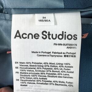 Acne Studios Womens Notched Lapel Blazer Size 34/ XS Wool Blend Office Blue