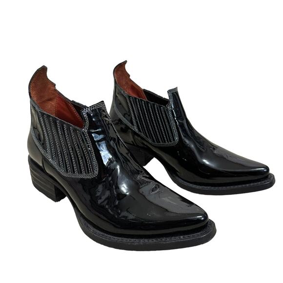 Acne studios gabby western short bootS black patent leather size 35 $700